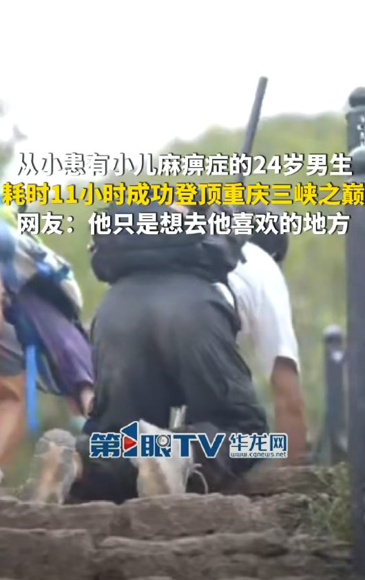 从小患有小儿麻痹症的24岁男生,耗时11小时成功登顶重庆三峡之巅。网友:他只是想去他喜欢的地方!