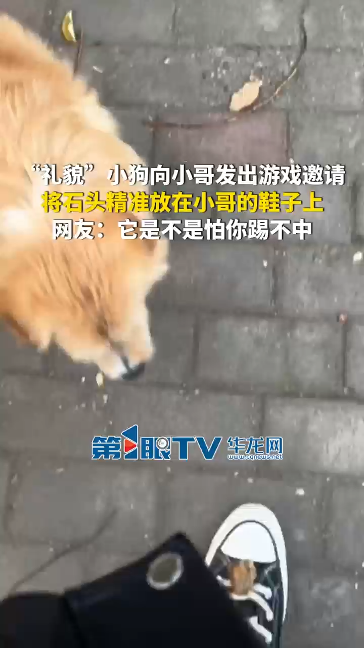 “礼貌”小狗向小哥发出游戏邀请!将石头精准放在小哥的鞋子上,网友:它是不是怕你踢不中?